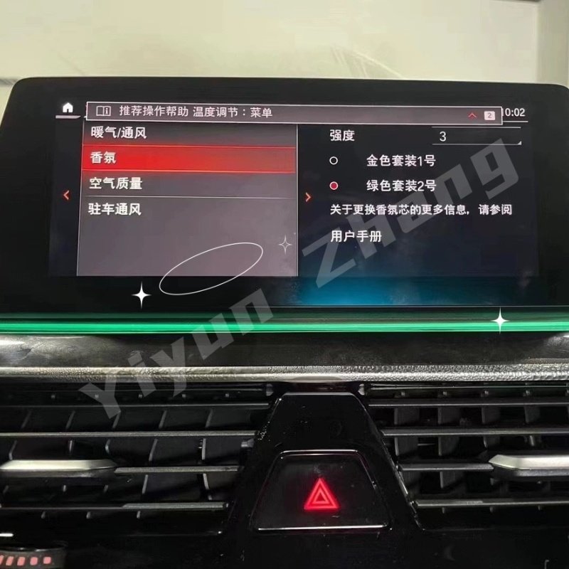 The BMW’s negative ion fragrance function is a factory provided system for fresh and purified air inside the car, which combines fragrance release and negative ion purification to enhance driving comfort and air quality.
